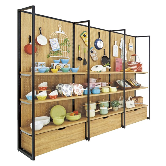 Different panel options allow you to adapt the shelving system to various product categories and display styles.