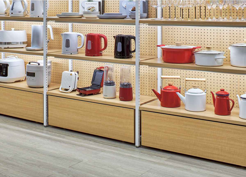 With wood-grain options as well as black and white color, it fits a wide range of store concepts, from flower shops and lifestyle stores to food-related displays.