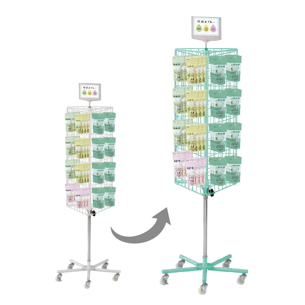部材の自由な組み合わせが可能なシステム什器は、店研創意を代表するオリジナル商品の一つです。これからもローコスト&短納期で魅力的な店舗づくりをお手伝いします。